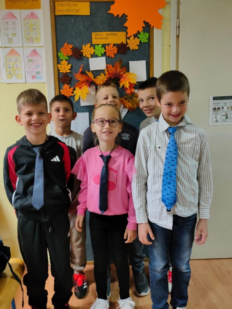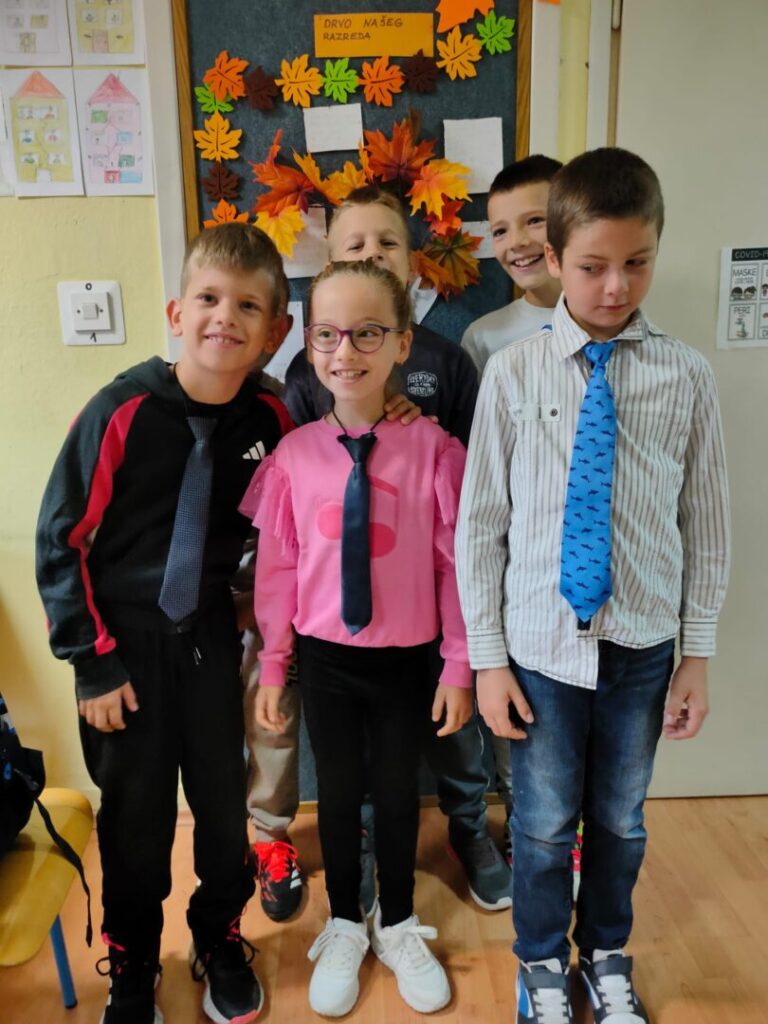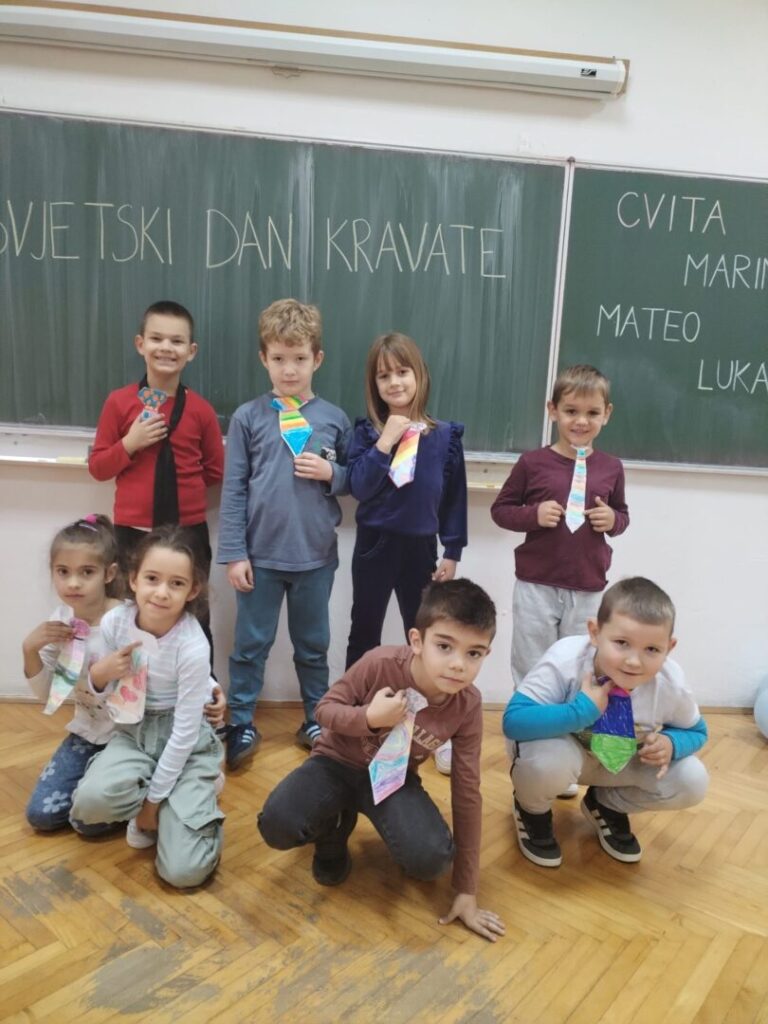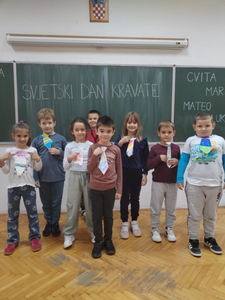 U petak 18. listopada u našoj školi obilježili smo Dan kravate, simbol hrvatskog identiteta, kulture i elegancije. Učenici i učitelji toga su dana prigodno odjenuli kravate različitih boja i uzoraka, stvarajući veselu i svečanu atmosferu u školi.