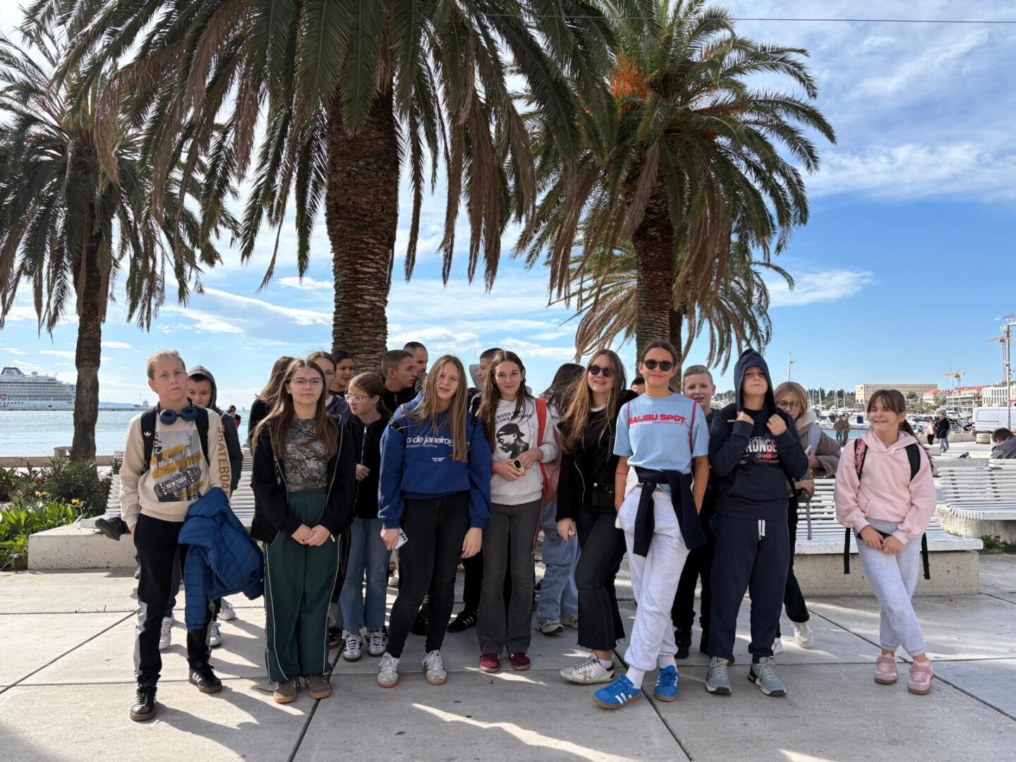Nakon filma prošetali smo starom gradskom jezgrom te učenike proveli po splitskim ulicama. Kroz Peristil i Dioklecijanove podrume došli smo do Obale hrvatskog narodnog preporoda, (poznatije kao splitske Rive) gdje smo se počastili sladoledom. Šetnja se nastavila Marmontovom ulicom do Prokurativa te opet natrag do osunčane Rive.